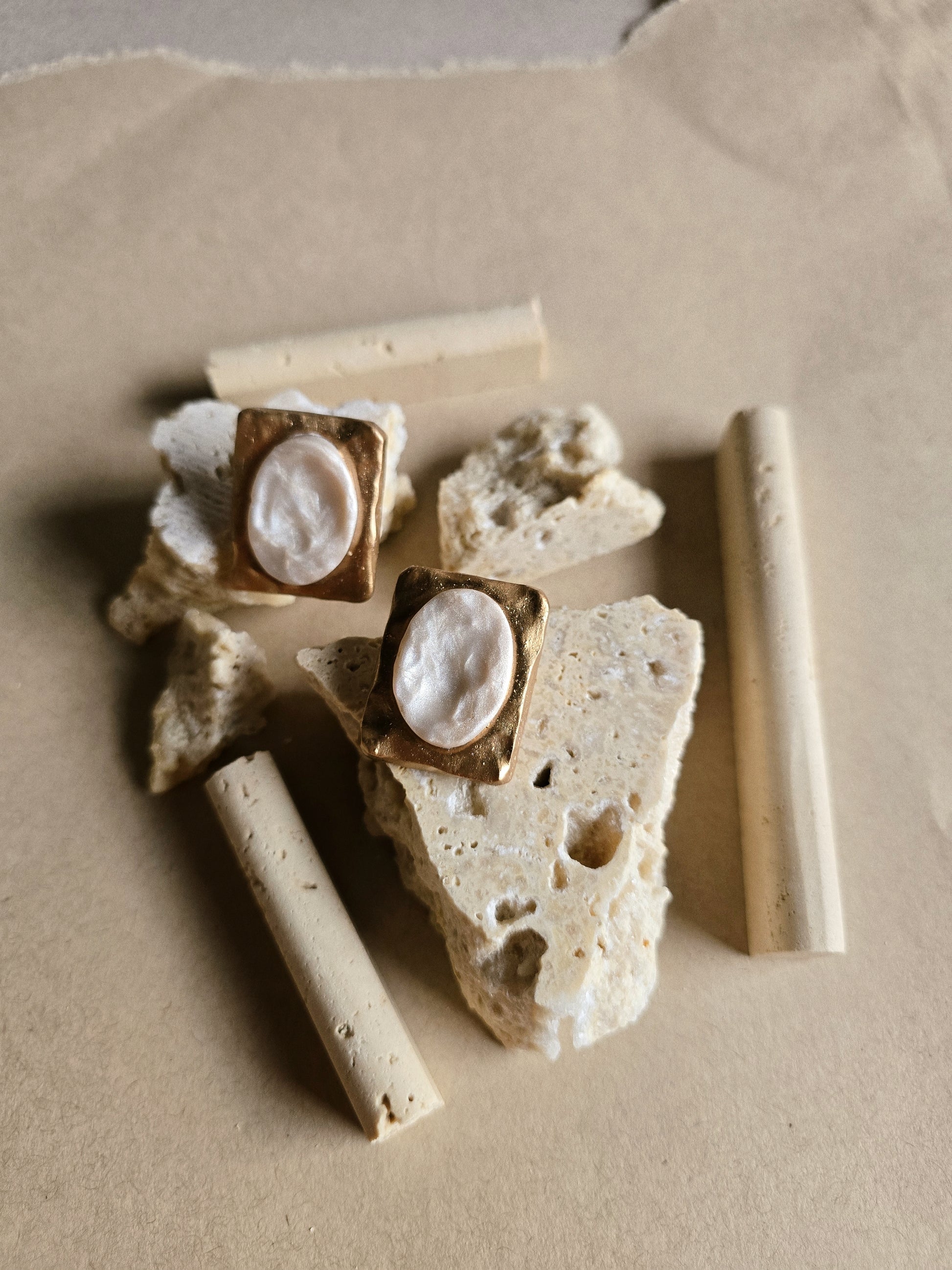 To remove makeup: gently use a cotton ball or Q-tip with acetone nail polish remover. DO NOT use acetone on certain decorative earrings. Ex. Gold leaf paint, exposed mica powder, etc. If you are unsure if you can use acetone on your earrings, please don't hesitate to ask.